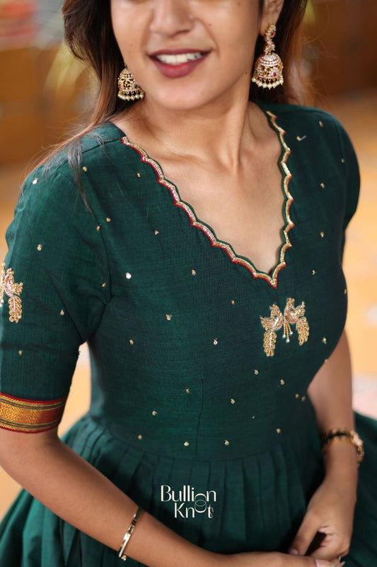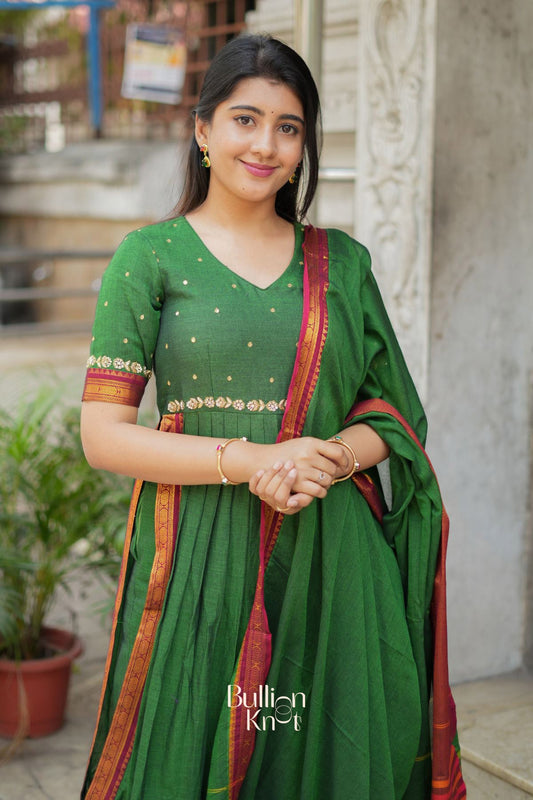 Dhiyona BN Bunaai Handloom Anarkali (Dress) in Green