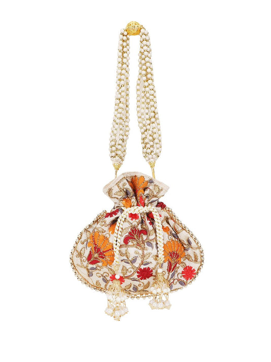 Buy 2 Get 1 FreeVendor:Dhiyona NRDhiyona NR Women Cream-Coloured & Orange Embroidered Potli Clutch