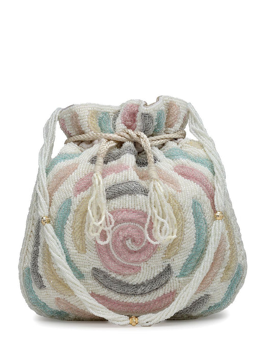 Dhiyona NR Dangle Off White & Pastel Multi Floral Embellished Georgette Potli