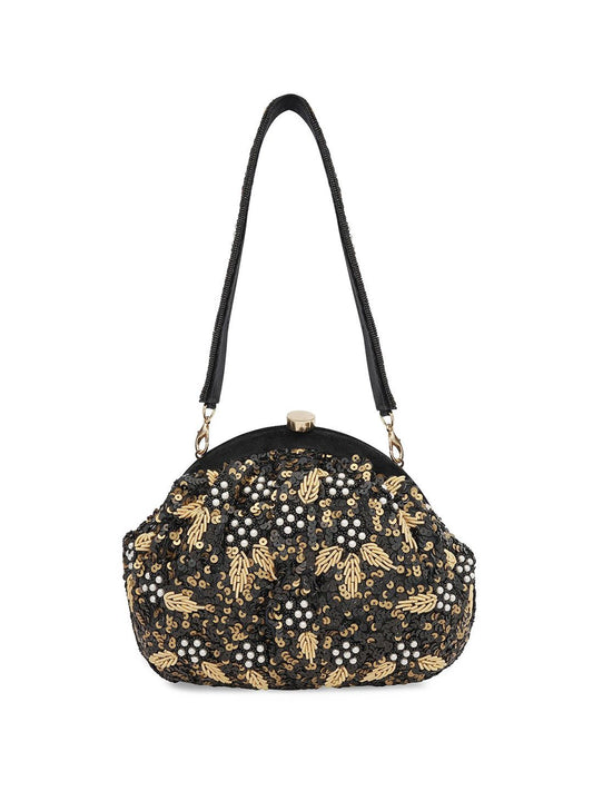 Dhiyona NR Embroidered Embellished Half Moon Clutch