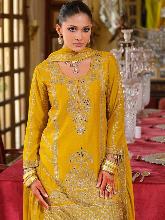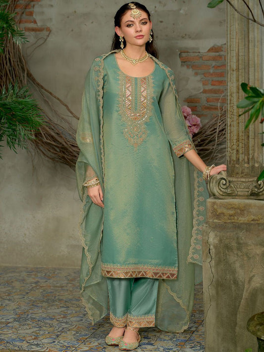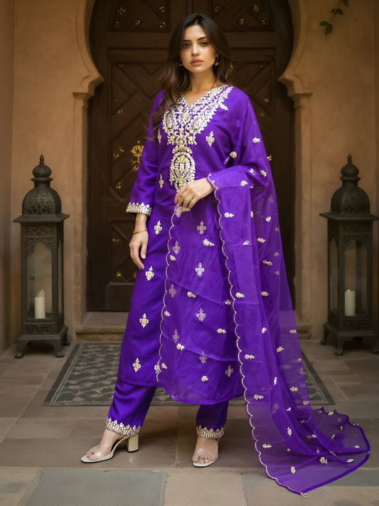 Dhiyona IE Women's Ethnic Motifs Embroidered Zari Kurta with Trousers & Dupatta