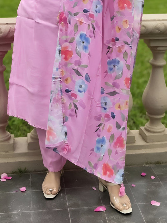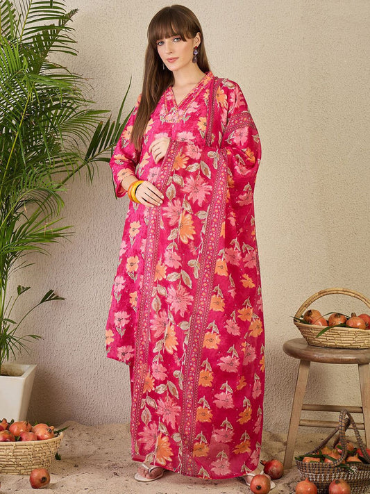 Dhiyona IE Women's Floral Printed Mandarin Collar Kurta With Trousers & Dupatta