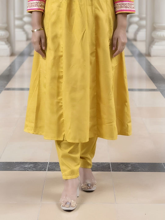Dhiyona IE Women's Women Ethnic Motifs Embroidered Chanderi Silk Kurta with Trousers