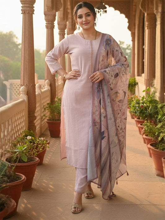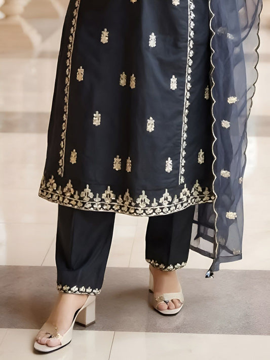 Dhiyona IE Women's Women Ethnic Motifs Embroidered Kurta & Trouser With Dupatta