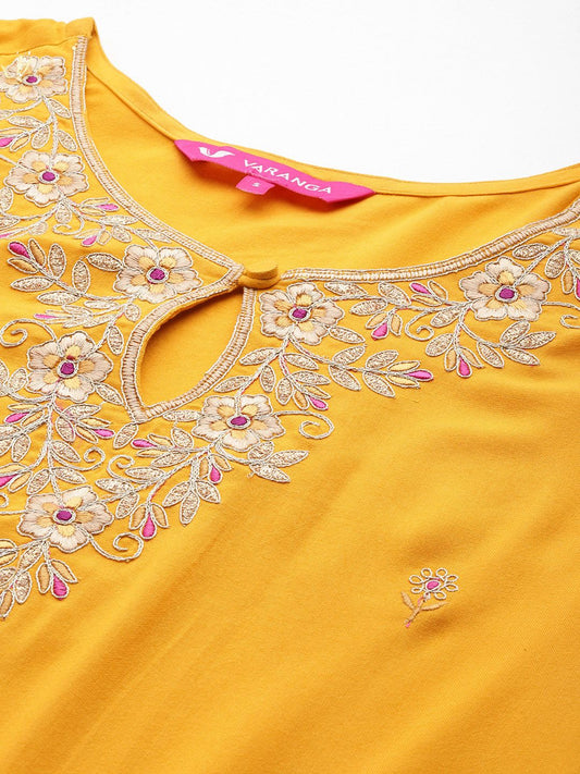 Dhiyona VA Women's Floral Embroidered Thread Work Straight Kurta & Trousers With Dupatta