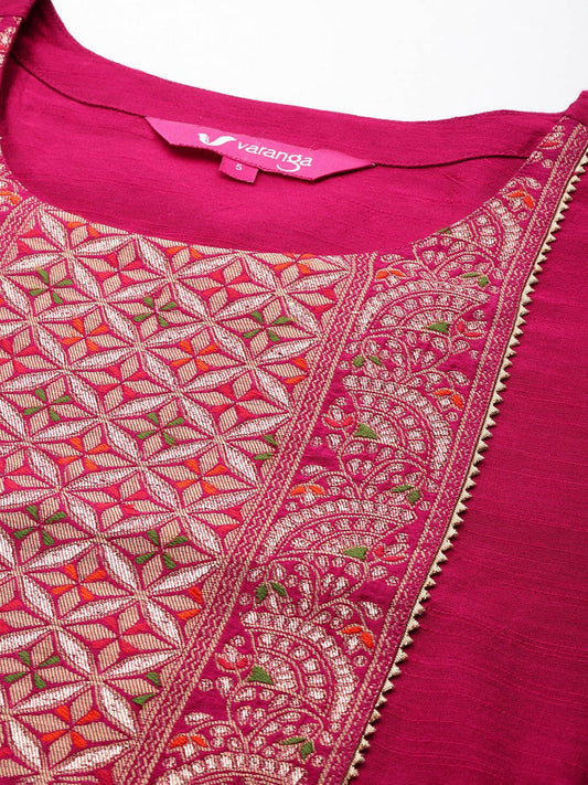 Dhiyona VA Women'sYoke Design Zari Work Chanderi Silk Straight Kurta with Trouser & Dupatta