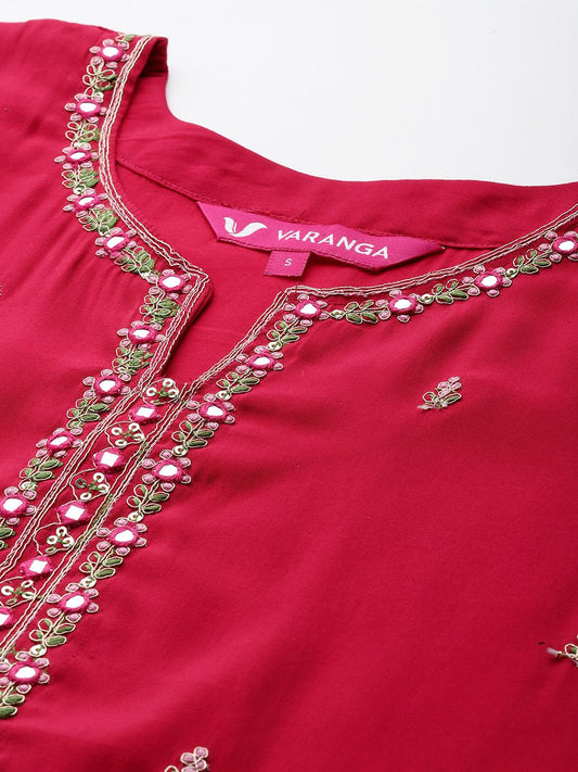 Dhiyona VA Women's Embroidered Panelled Thread Work Kurta&Palazzos