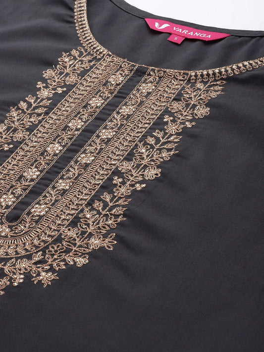 Dhiyona VA Women's Grey & Black Kurta with Trousers & Dupatta