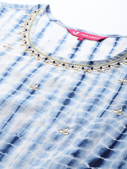 Dhiyona VA Women's Leheriya Printed Mirror Work Pure Cotton Kurta with Trousers & With Dupatta