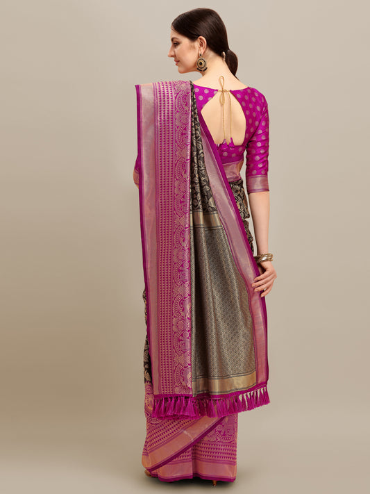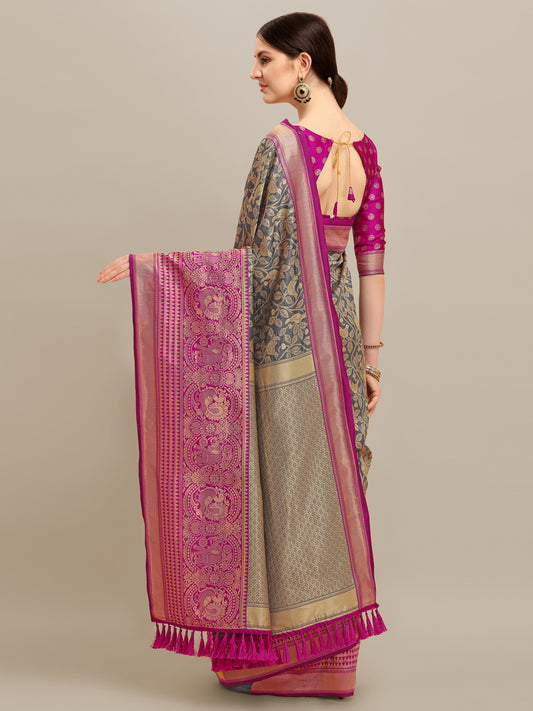Dhiyona RV Women's Banarasi Silk With silver Zari weaving Saree ( KVD1185 )