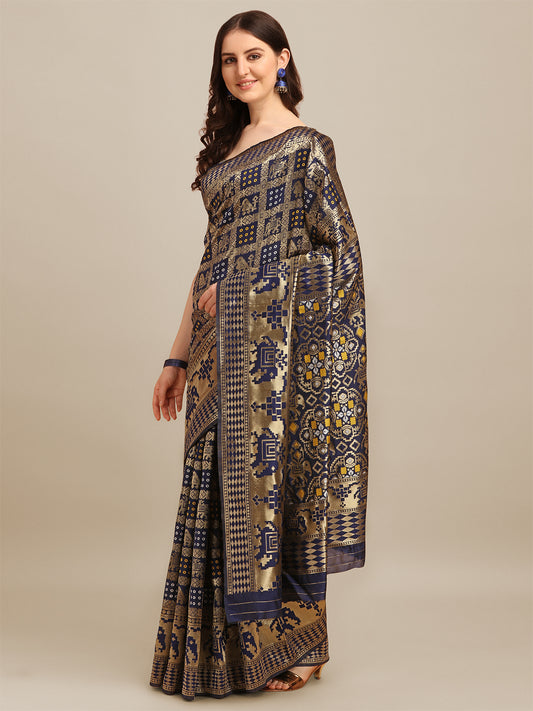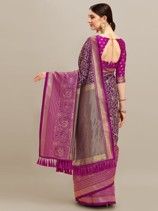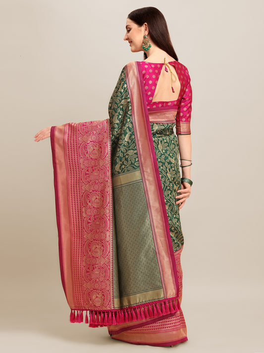 Dhiyona RV Women's Banarasi Silk With Silver and Golden Jacquard Print Saree ( KVD916 )