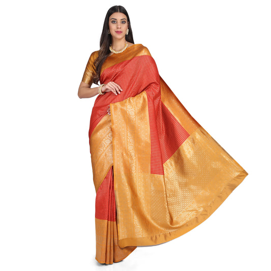 Dhiyona RV Women's Assam Silk With Golden Broad Border Saree ( KVD986 )