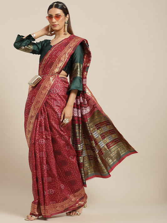 Dhiyona RV Women's Banarasi Cotton Silk With Zari weaving Bandhani Saree ( KVD1260 )