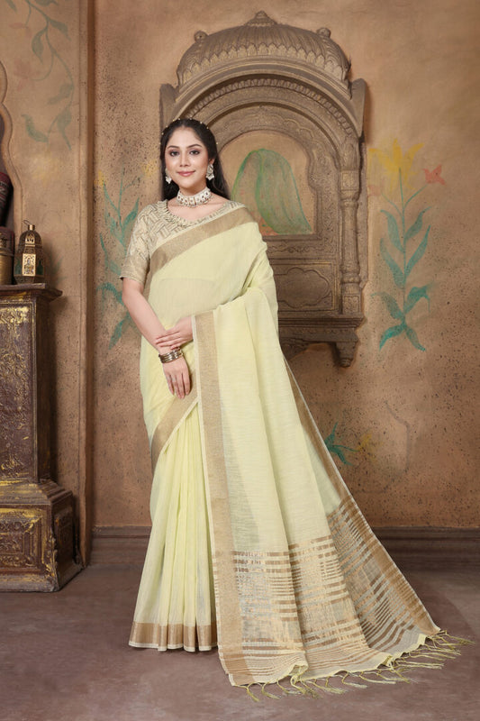 Dhiyona GR Women's Glory Yellow Soft Linen Solid Woven Saree