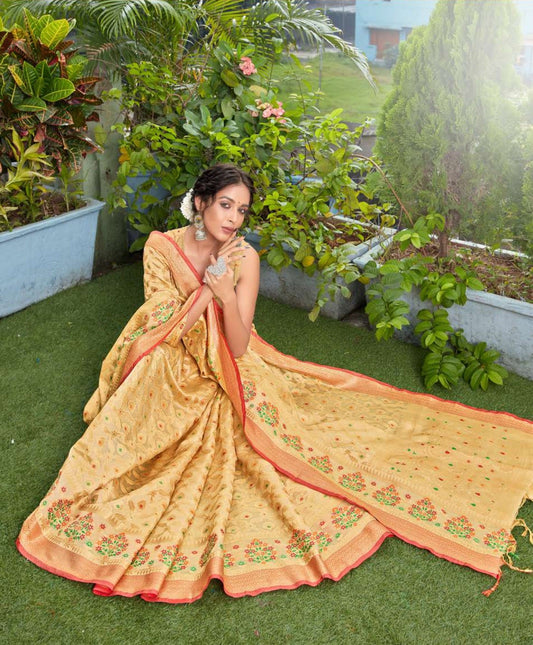 Dhiyona GR Women's Gulabo Almond Beige Woven Jamewar Kashmiri Modal Silk Saree