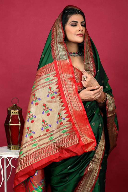 Dhiyona GR Women's Chandramukhi Bottle Green Zari Paithani Silk Saree