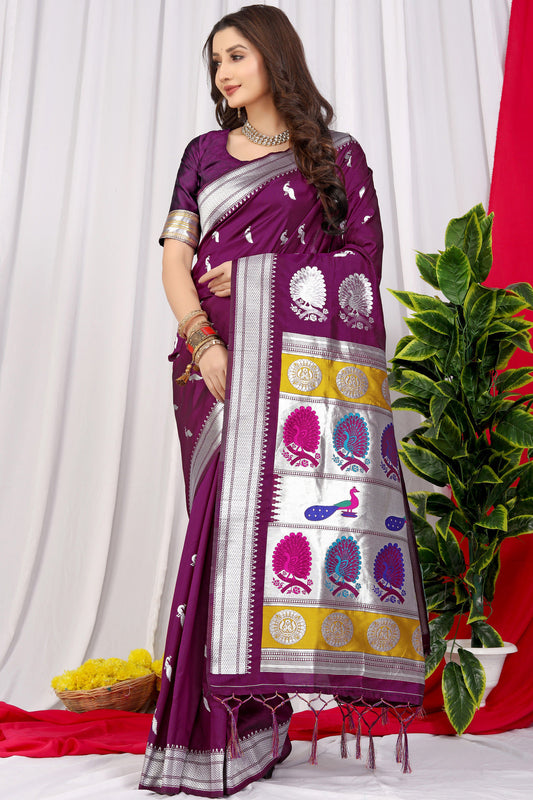 Dhiyona GR Women's Chandramukhi Purple Zari Paithani Silk Saree