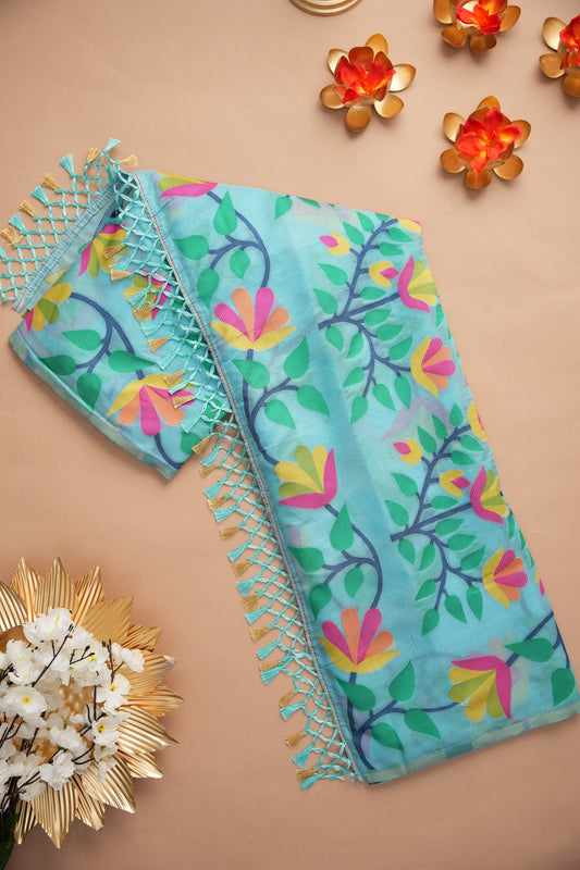 Dhiyona GR Women's Luxuria Turquoise Banarasi Digital Soft Silk Saree