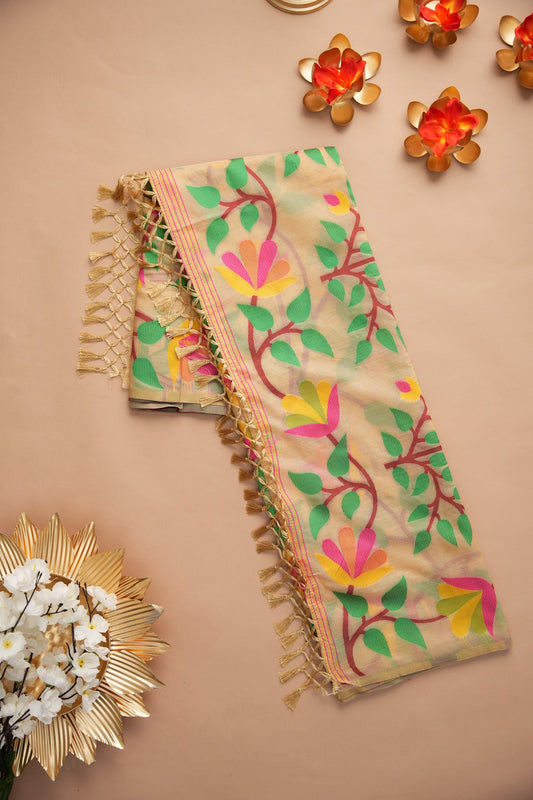 Dhiyona GR Women's Kalini Beige Retro Rhapsody Organza Jamdani Saree