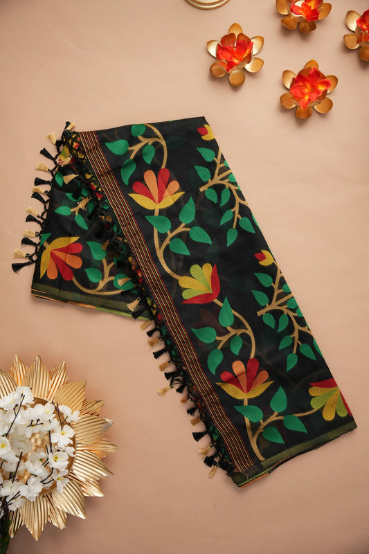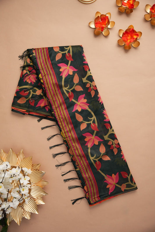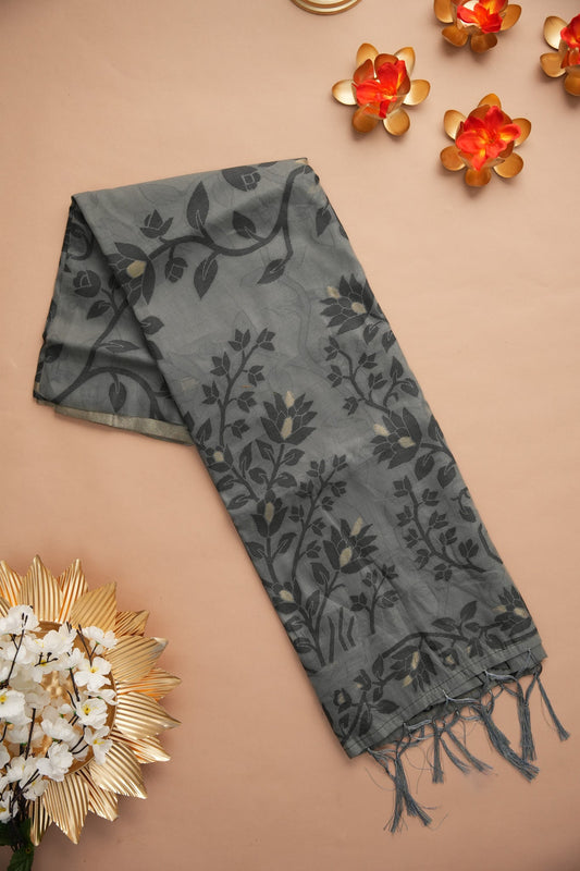 Dhiyona GR Women's Trisha Black & Grey Soft Cotton Jamdani Saree