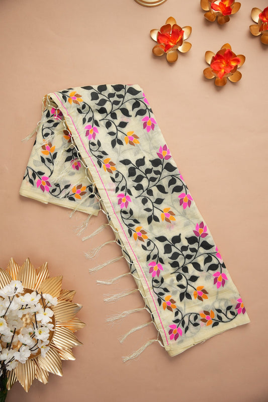 Dhiyona GR Women's Soumya Urbanic Elegance Off-White Cotton Jamdani Saree