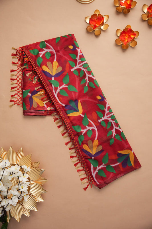 Dhiyona GR Women's Kalini Red Retro Rhapsody Organza Jamdani Saree