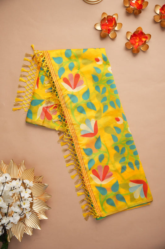 Dhiyona GR Women's Kalini Yellow Retro Rhapsody Organza Jamdani Saree