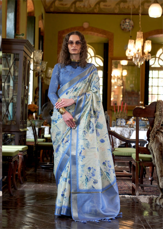 Dhiyona GR Women's Queen Blue Banarasi Digital Soft Silk Saree