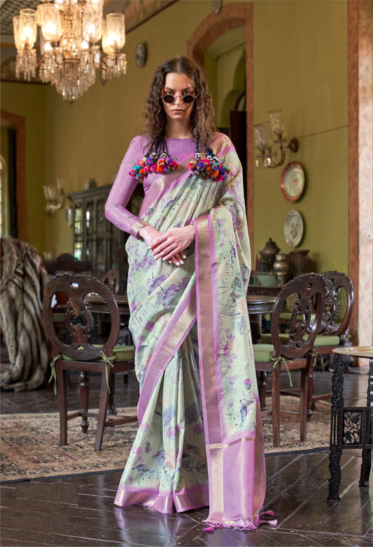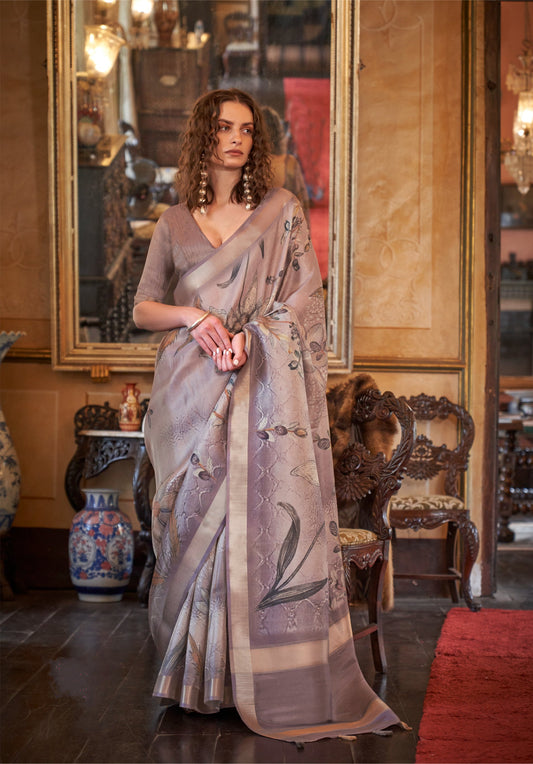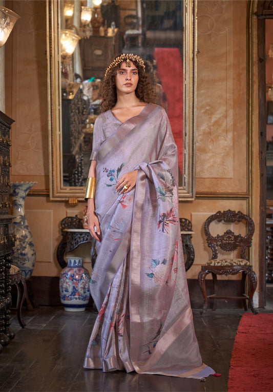 Dhiyona GR Women's Luxuria Lavender Banarasi Digital Soft Silk Saree