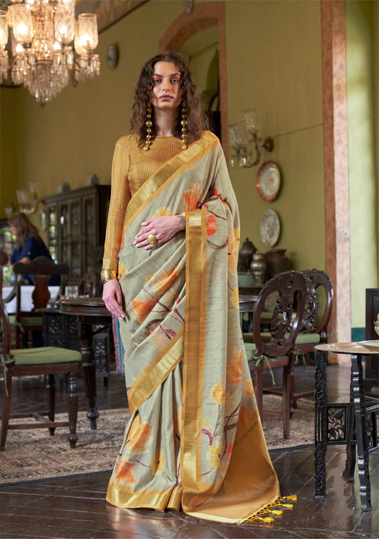 Dhiyona GR Women's Luxuria Mustard Banarasi Digital Soft Silk Saree