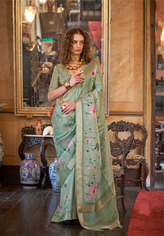 Dhiyona GR Women's Queen Green Banarasi Digital Soft Silk Saree