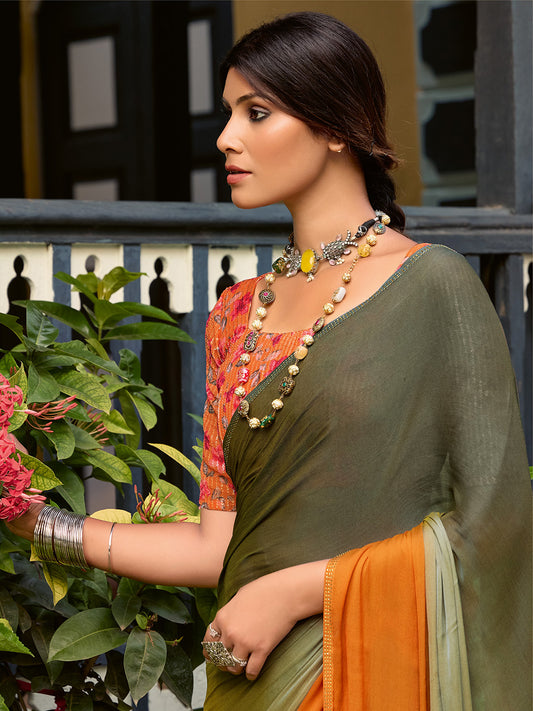 Women's Chiffon Bronze Embellished Celebrity Saree With Blouse Piece