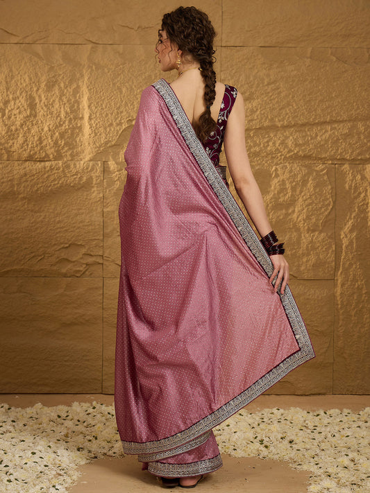 Women's Vichitra Silk Mauve Embroidered Designer Saree With Blouse Piece