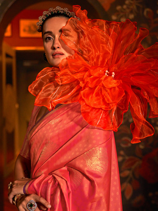 Women's Silk Blend Pink Woven Design Designer Saree With Blouse Piece