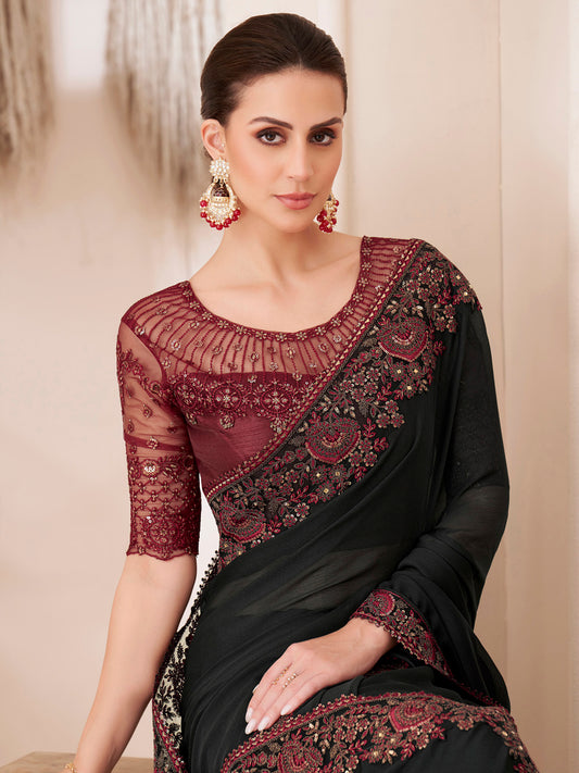 Vendor:Dhiyona SMWomen's Pure Chiffon Maroon Embellished Designer Saree With Blouse PieceRegular price $80Regular priceUnit price / per$140Sale price $80 42% off40%