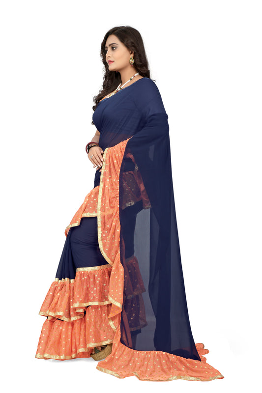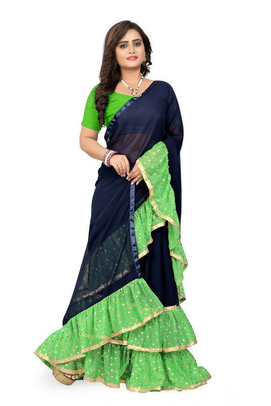 Dhiyona RV Women's Plain Georgette Ruffle Saree with Banglory Silk Blouse ( KVD442 )