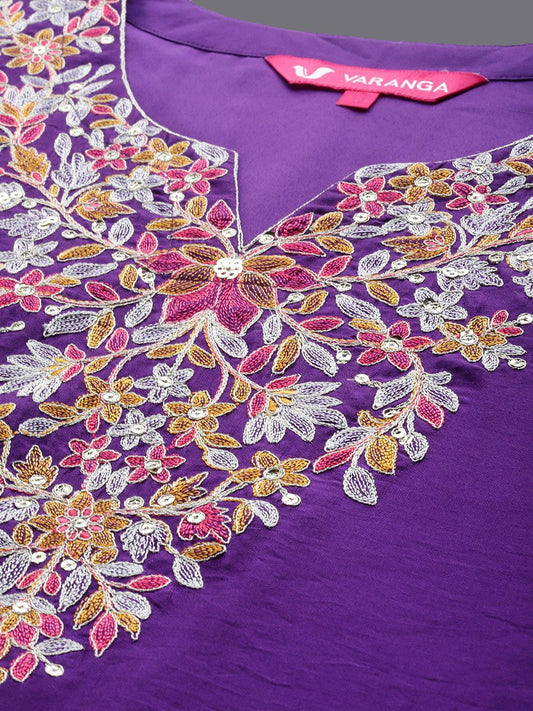 Dhiyona VA Women'sFloral Thread Embroidered Sequinned Chanderi Silk Kurta & Palazzos With Dupatta