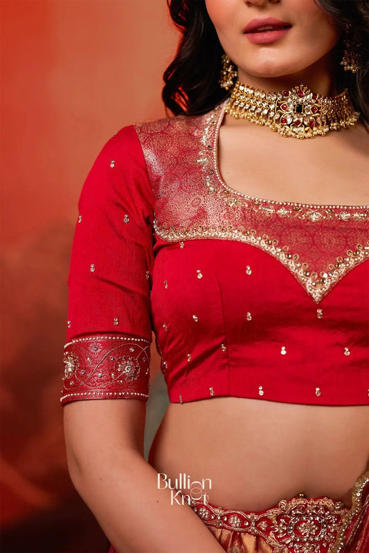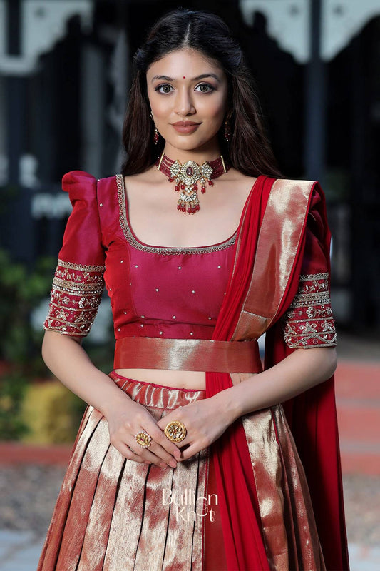Dhiyona BN Amulya Tissue Zari Lehenga Set in Red