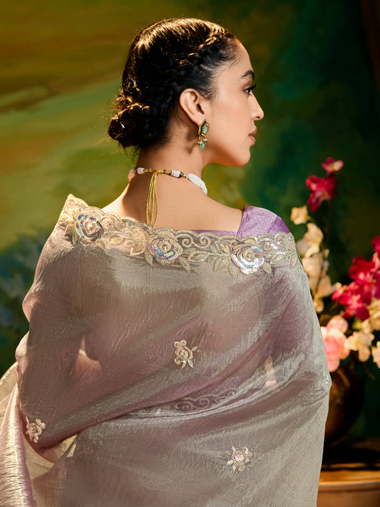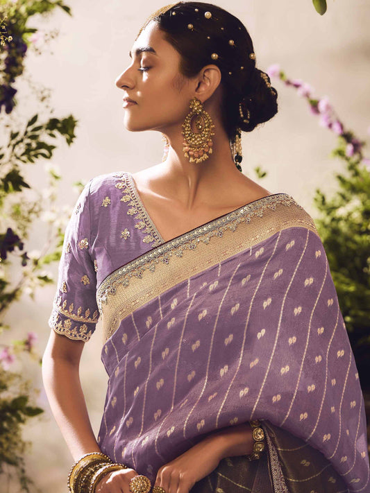 Dhiyona KM Women Purple Designer Organza Saree: Effortless Elegance For Every Occasion
