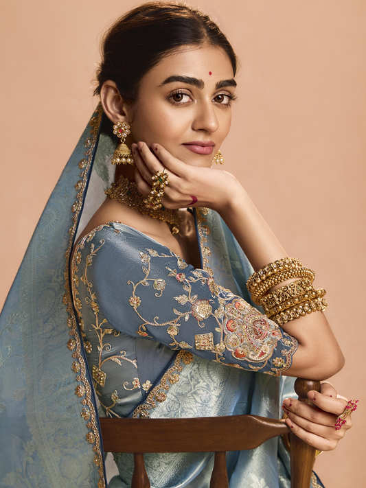 Dhiyona KM Women Sky Blue Banarasi Dola Silk Saree