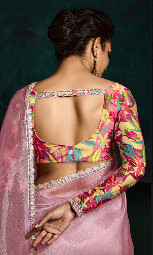 Dhiyona KM Women Pink Designer Organza Saree €“ A Blush Of Elegance