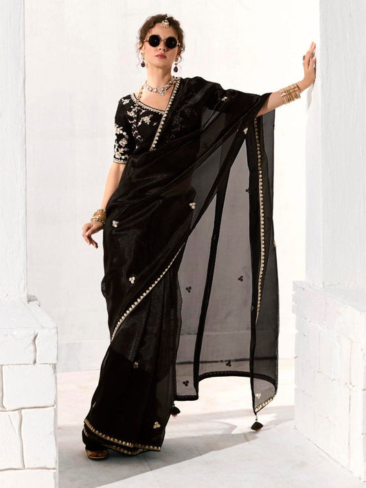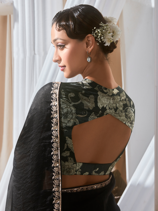 Dhiyona KM Women Black Organza Saree: Effortless Elegance For Every Occasion