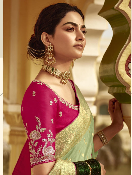 Dhiyona KM Women Ethereal Mint Green Silk Saree “ A Graceful Heritage