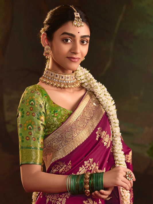 Dhiyona KM Women Lavender Banarasi Silk Saree With Zari Weaving