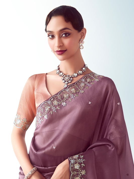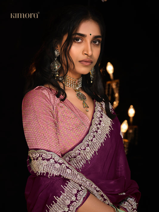 Dhiyona KM Women Dusty Rose Silk Saree Partywear Saree