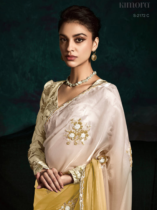 Dhiyona KM Women Yellow Shade Silk Saree With Designer Blouse