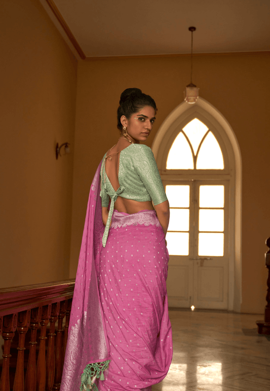 Dhiyona KM Women Lavender Banarasi Dola Silk Saree