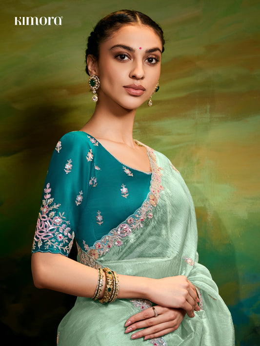 Dhiyona KM Women Stunning See Green Designer Organza Saree “ A Touch Of Elegance And Grace