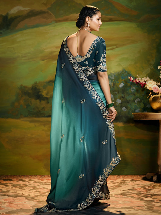 Dhiyona KM Women Peacock Grace: Dual Tone Saree With Zari & Sequin Embroidery