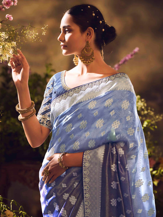 Dhiyona KM Women Sky Blue Designer Organza Saree: Effortless Elegance For Every Occasion